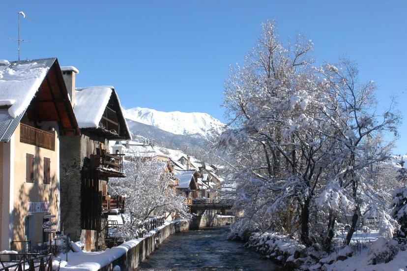Picturesque traditional town of Serre Chevalier ski resort in winter